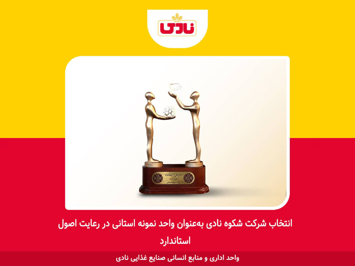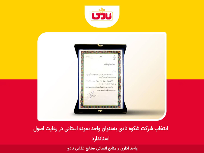 از سوی اداره کل استاندارد گیلان شرکت شکوه نادی به عنوان واحد نمونه استانی انتخاب و معرفی گردید.