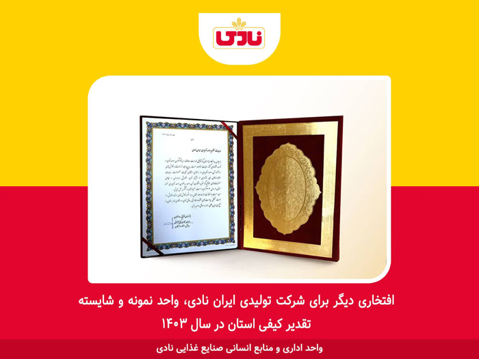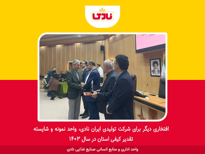 شرکت ایران نادی به عنوان واحد نمونه و شایسته تقدیر استانی انتخاب و معرفی گردید.